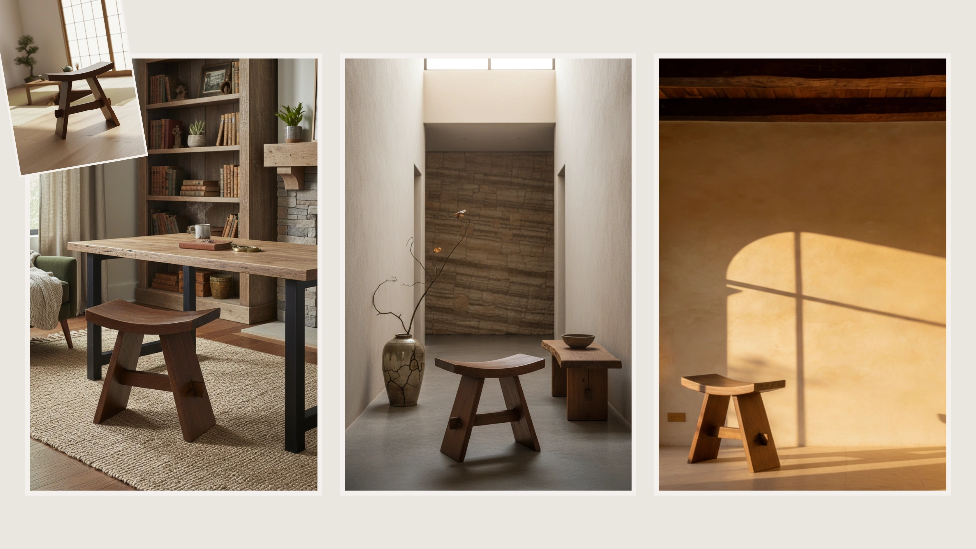 Each render maintained the exact material fidelity of the original walnut barstool while adapting the surrounding environment to match the cultural and architectural expectations of the target market.